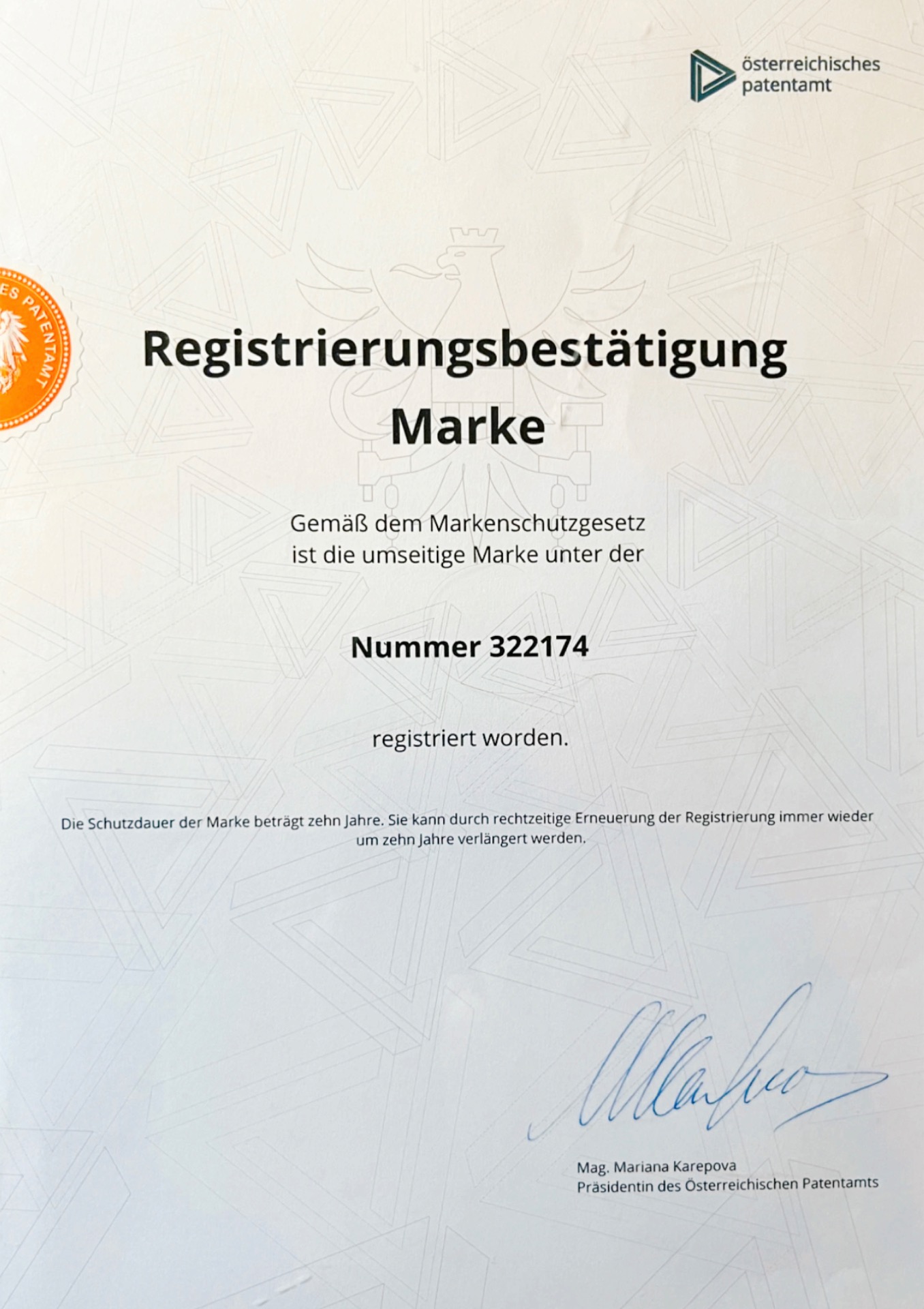 UNSERE EIGENMARKE VOLL GESCHÜTZT BEIM PATENTAMT & MIT GÜTESIEGEL DER WIRTSCHAFTSKAMMER ÖSTERREICH